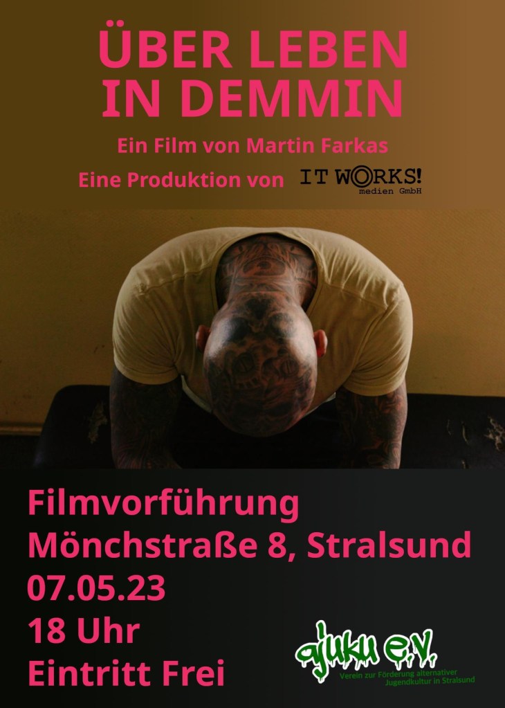 Am 07.05.2023 präsentieren wir Euch um 18Uhr den Film „Über Leben in Demmin“ von Martin Farkas in der Mönchstraße 8 in Stralsund. Der Eintritt ist frei!